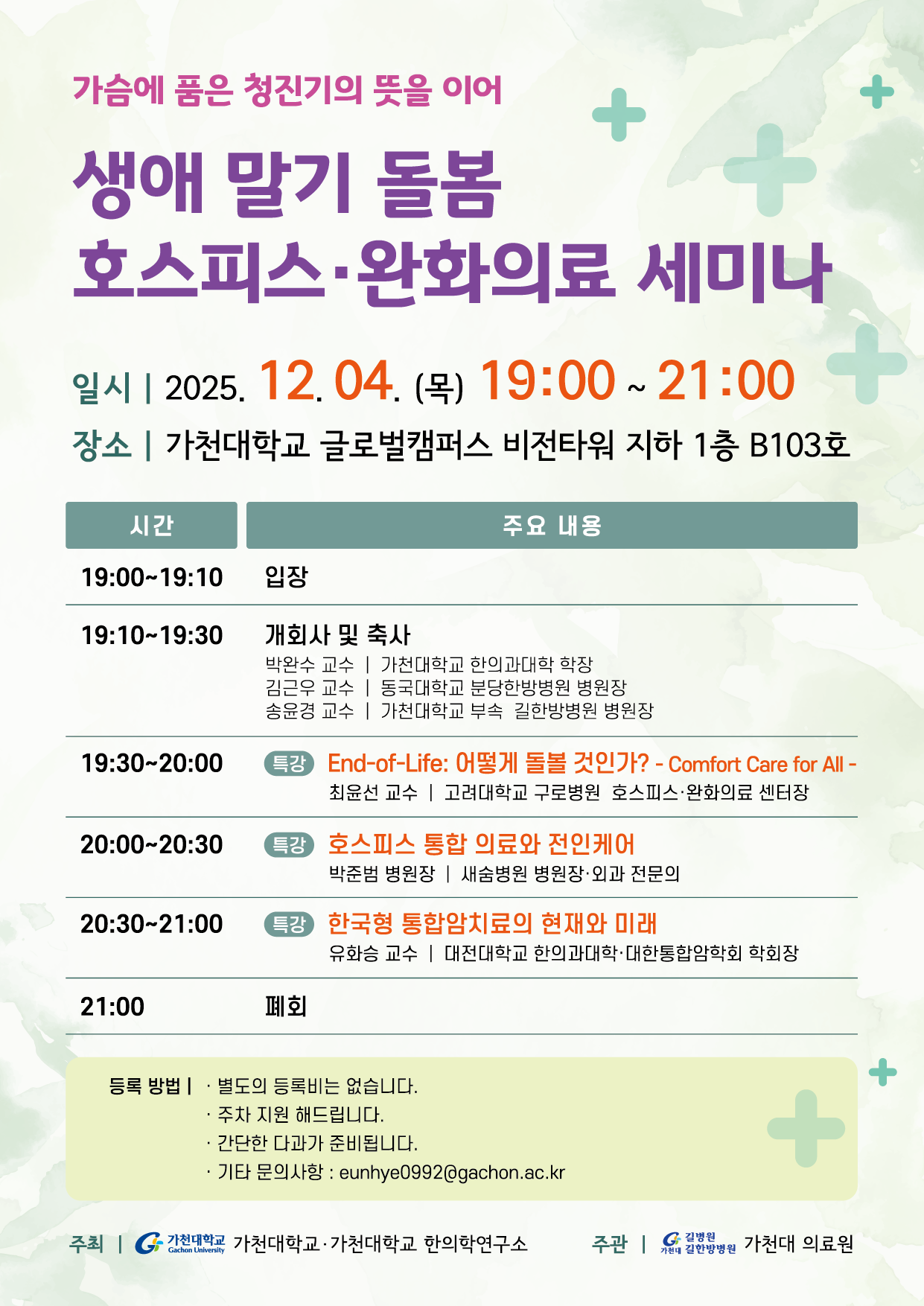 '생애 말기 돌봄, 호스피스·완화의료 세미나' 개최 안내